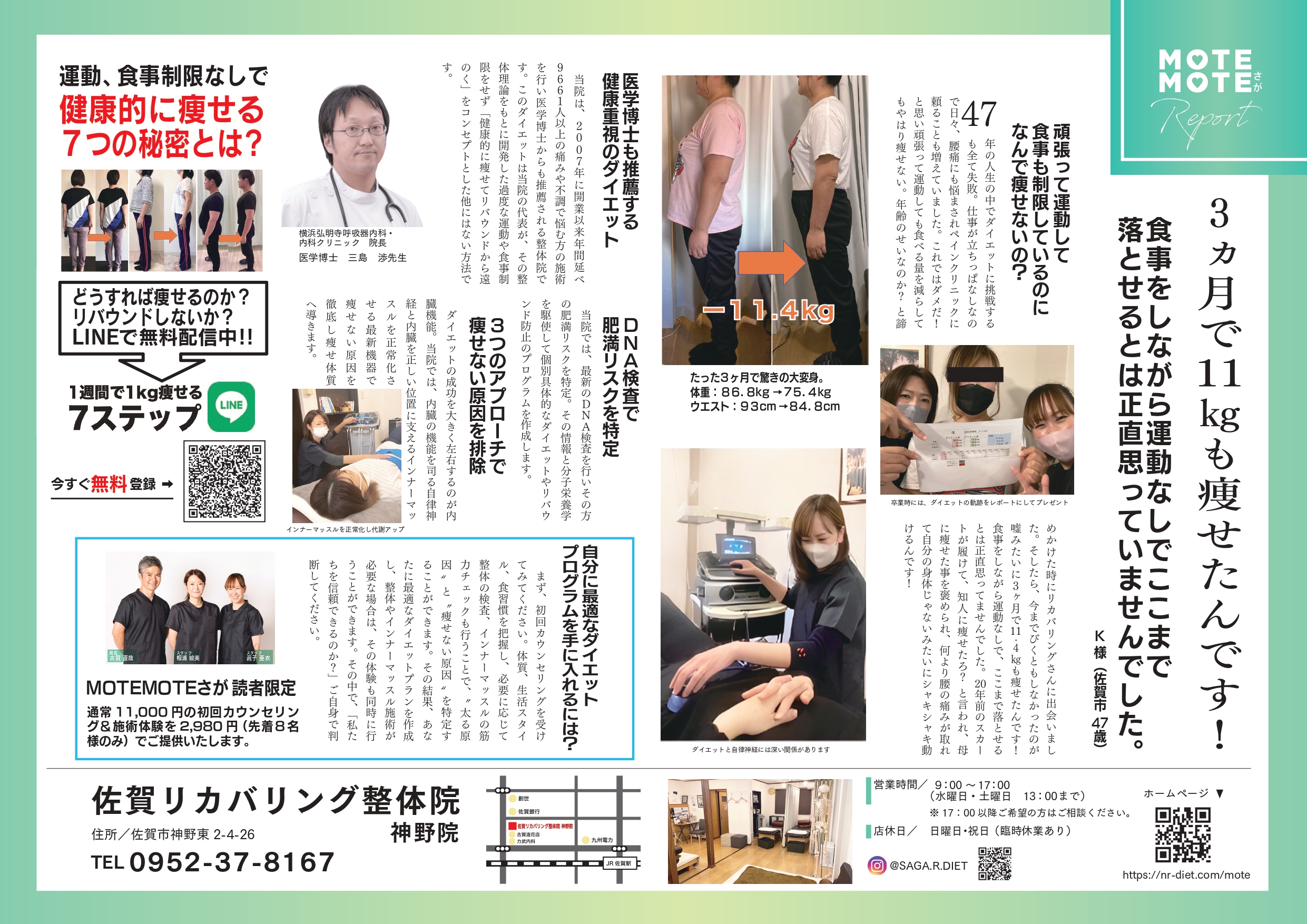 現在、私は埼玉県鴻巣市で「ダイエットも叶う整体院」で院長をしています。